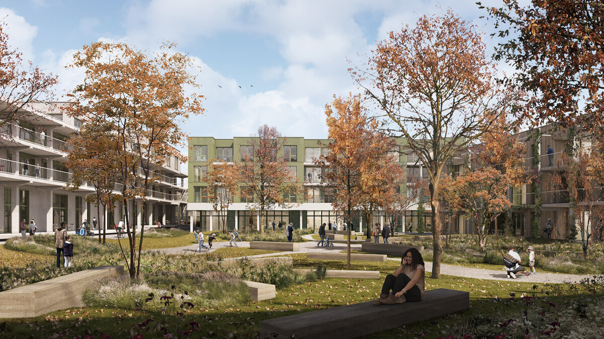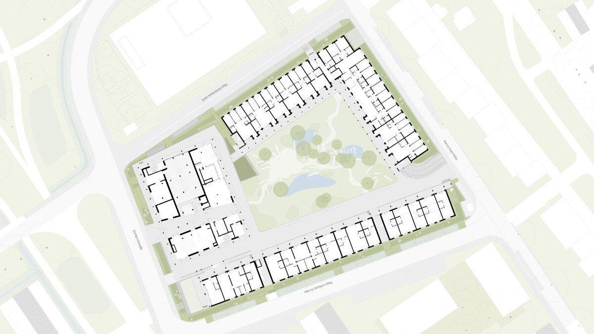 Auf dem Gelände der ehemaligen Oxford-Kaserne entsteht ein Ensemble aus drei großen Gebäuden, die um einen gemeinschaftlich genutzten Innenhof mit „rainwater garden“ gruppiert sind. Wiederkehrende Bauelemente sorgen für gestalterischen Zusammenhang. Die gemeinschaftlichen Räume, eingebettet in das Wohnumfeld, verleihen dem Projekt eine urbane, offene Identität.